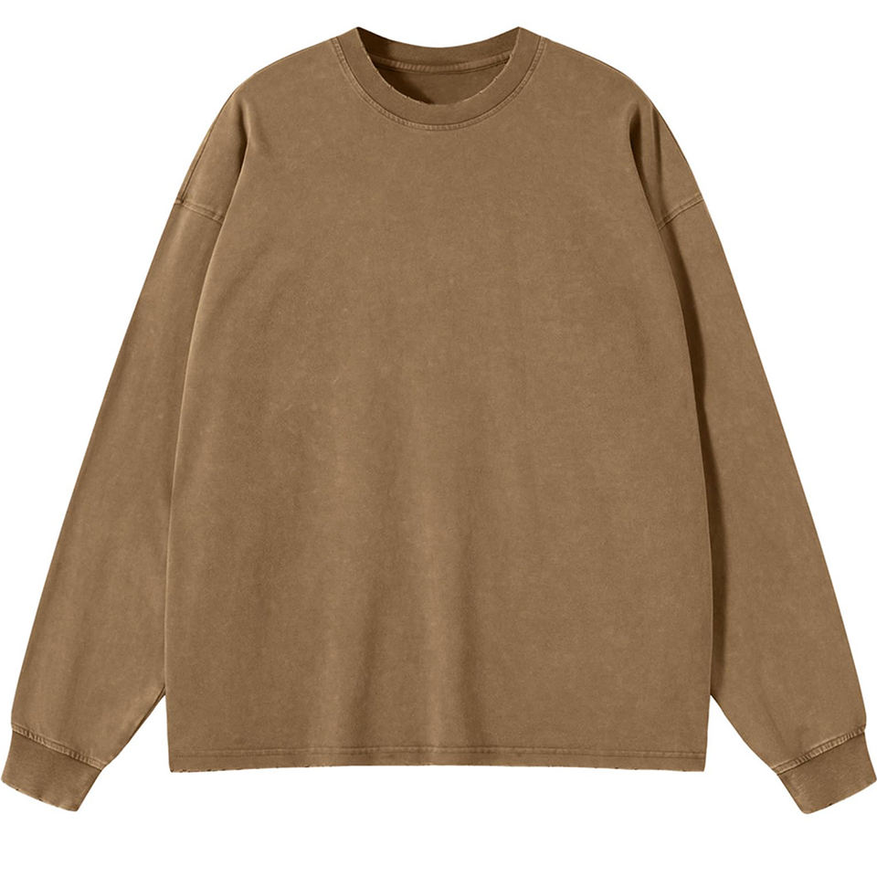 Sweat-shirt à col rond pour homme, grande taille, 100% coton, motif uni, lavage à l'acide, anti-rétrécissement, tissu jersey unique, imperméable