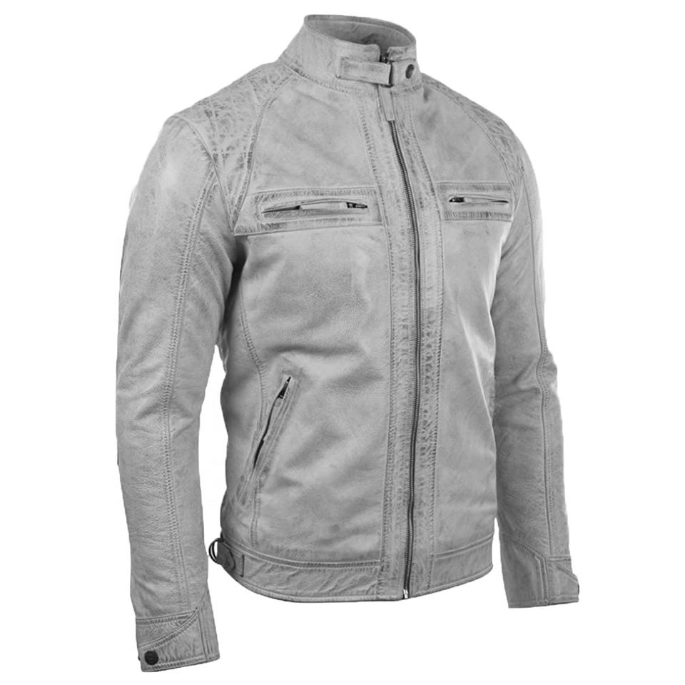 Veste en cuir à col montant pour homme, coupe-vent, décontracté, pour moto
