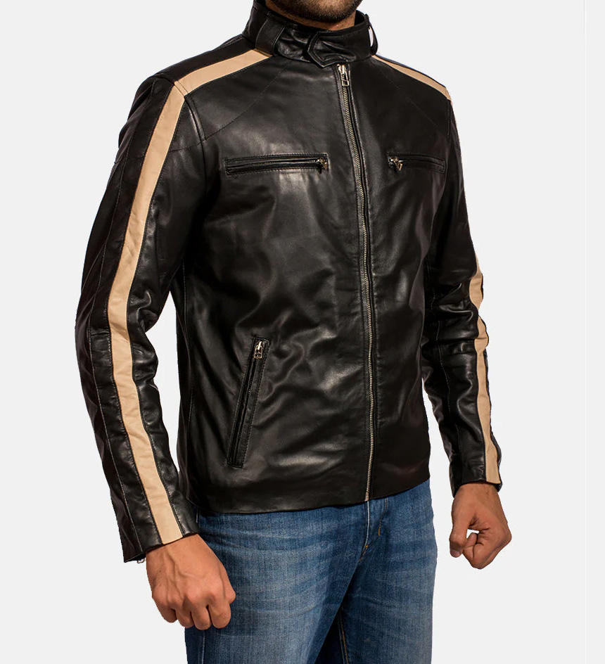 Blouson de moto unisexe en polyester/coton et cuir, coupe ajustée, doux, uni, imperméable, coupe-vent, personnalisable