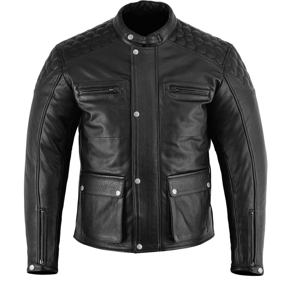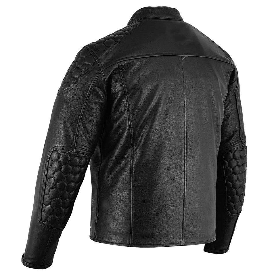 Veste de moto en cuir matelassé pour homme, manteau à col montant, manteau en cuir véritable pour homme