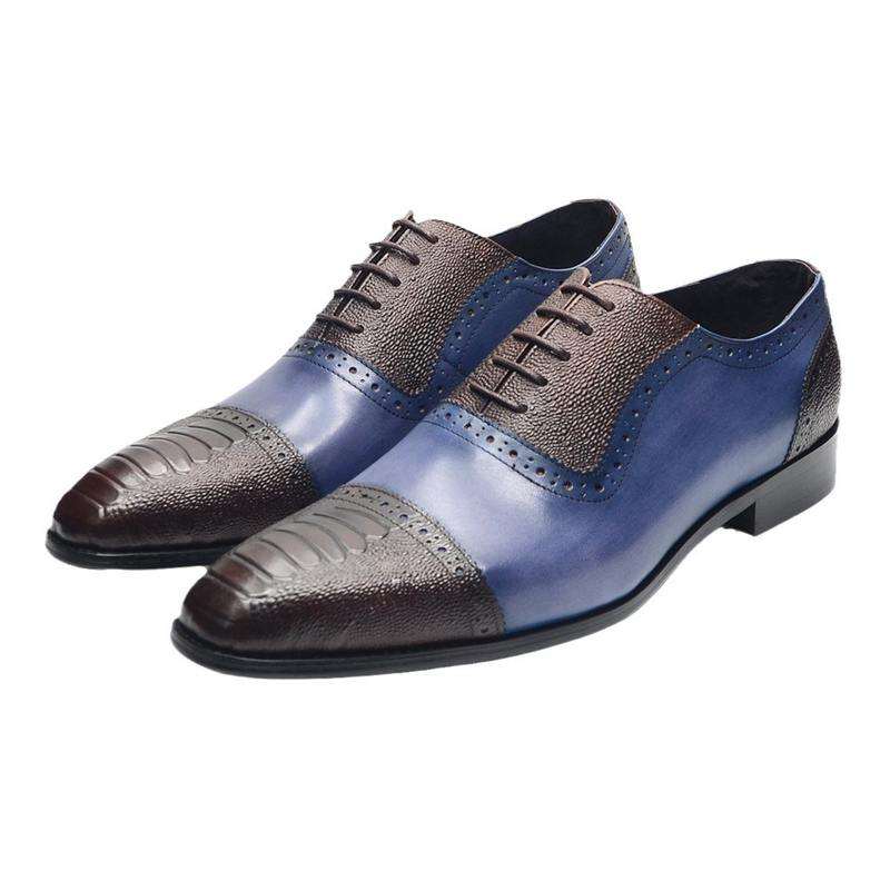 Men's Leather Patchwork Oxford Shoes - Lace-Up, Carved Design for Business, Formal & Wedding, Two-Tone Dress Footwear