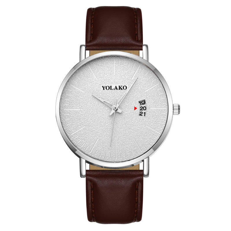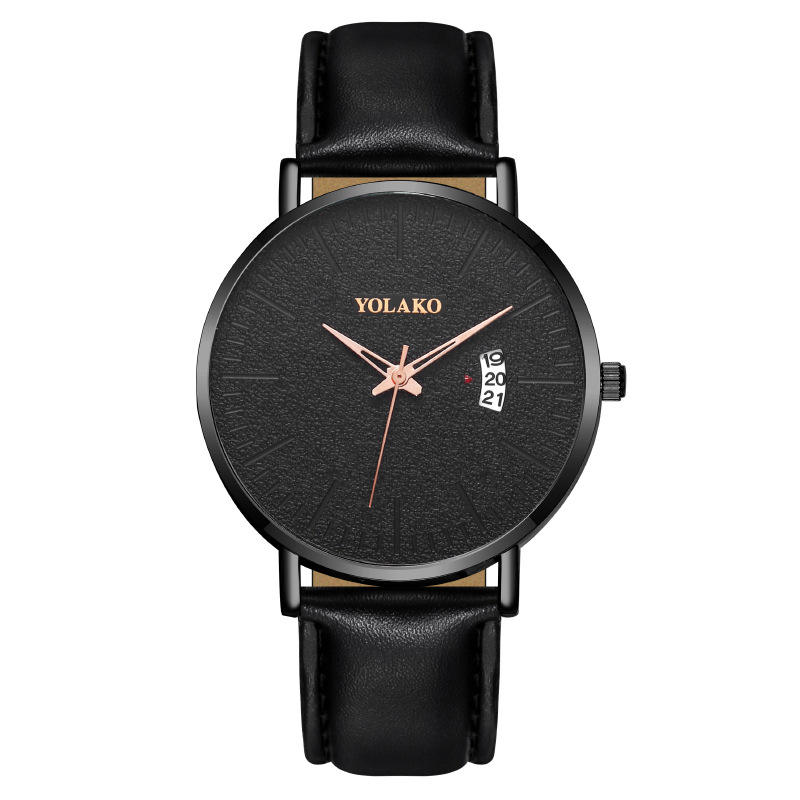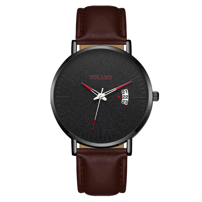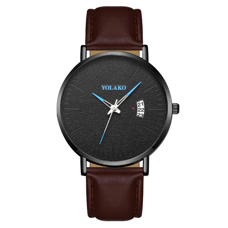 Montre à bracelet en cuir pour homme, mouvement à quartz, calendrier à aiguille bleue, montre-bracelet de style business