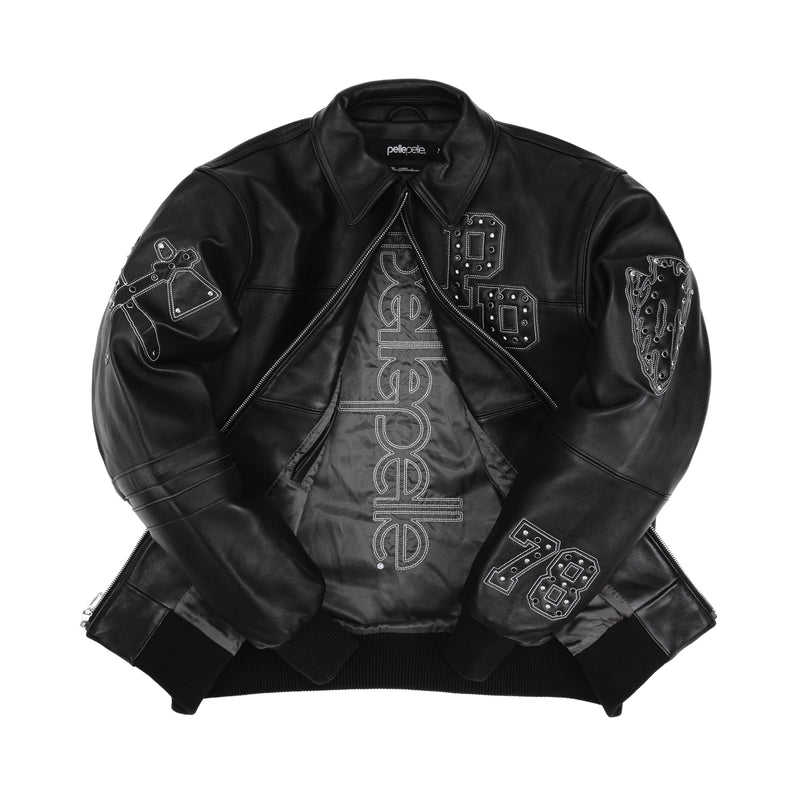 Veste universitaire en cuir pour homme, design original, broderies, rivets en strass, entièrement personnalisable, fabricant, imperméable, écologique