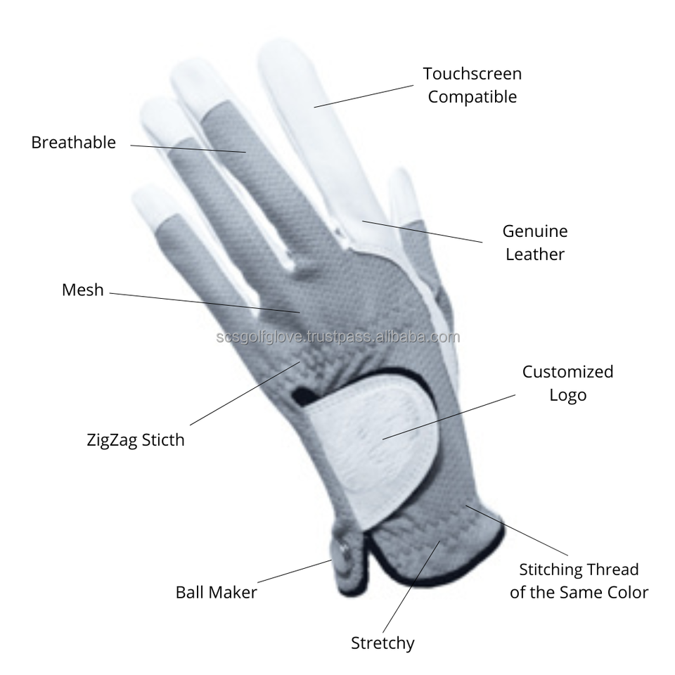 Gants de golf pour hommes, main gauche, haute qualité, logo personnalisé, maille respirante, cabretta en cuir véritable, golf d'extérieur à la mode