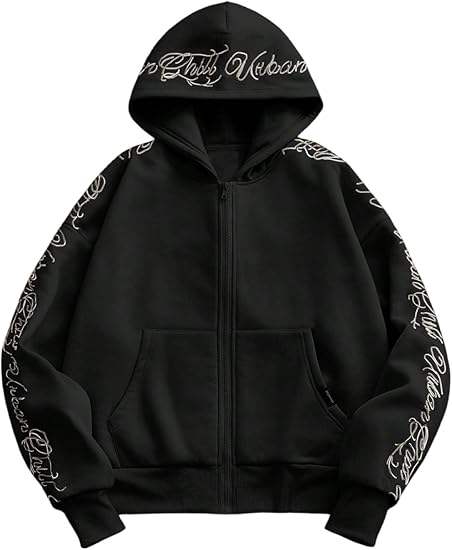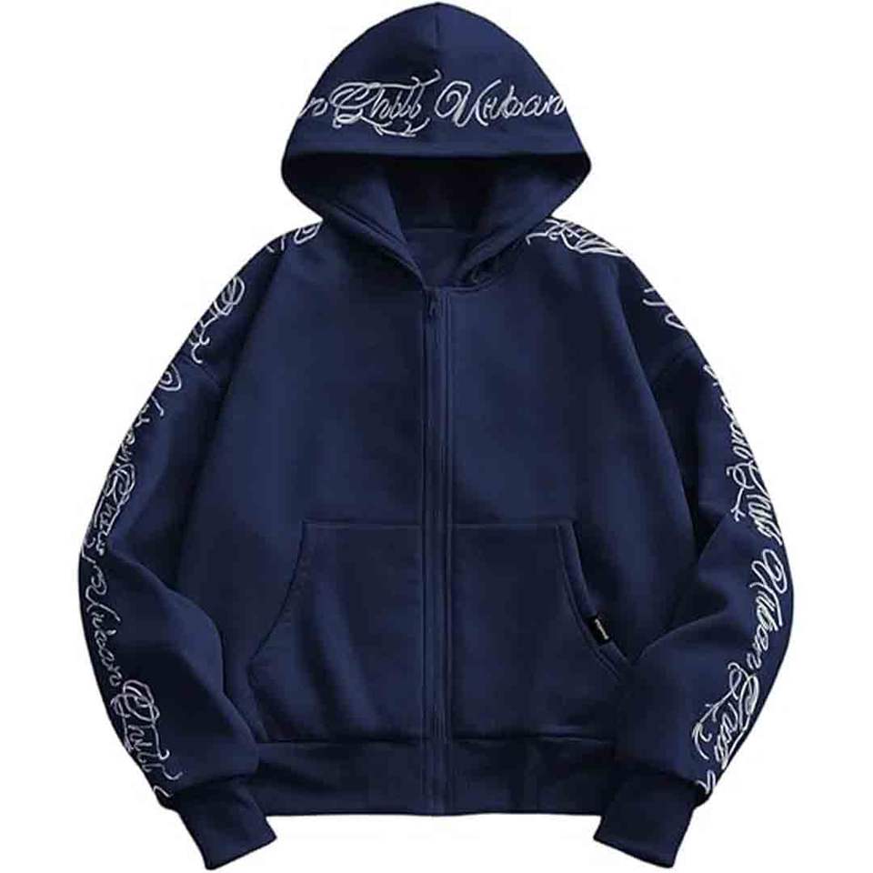Sweat à capuche unisexe en molleton Y2K avec fermeture éclair, 100 % coton, broderie graphique lettres, manches longues, style streetwear