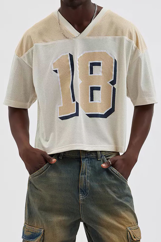 Hauts en jersey de maille Boxy à col en V et col en V 100% léger pour hommes, vêtements de football respirants, t-shirts athlétiques pour garçons