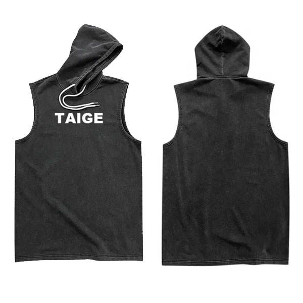 Débardeur d'entraînement de gymnastique avec impression de logo personnalisé léger pour hommes ensemble de gilet oversize emmanchures fitness musculation à capuche pour