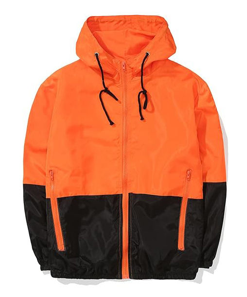 Men's Lightweight Hooded Windbreaker Jacket with Zip-Up Closure Embroidery Waterproof Breathable for Casual Workout Rain Running
