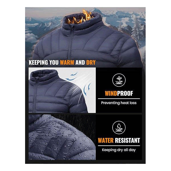Veste d'hiver isolée légère et compressible pour hommes, manteau en duvet alternatif résistant à l'eau de haute qualité