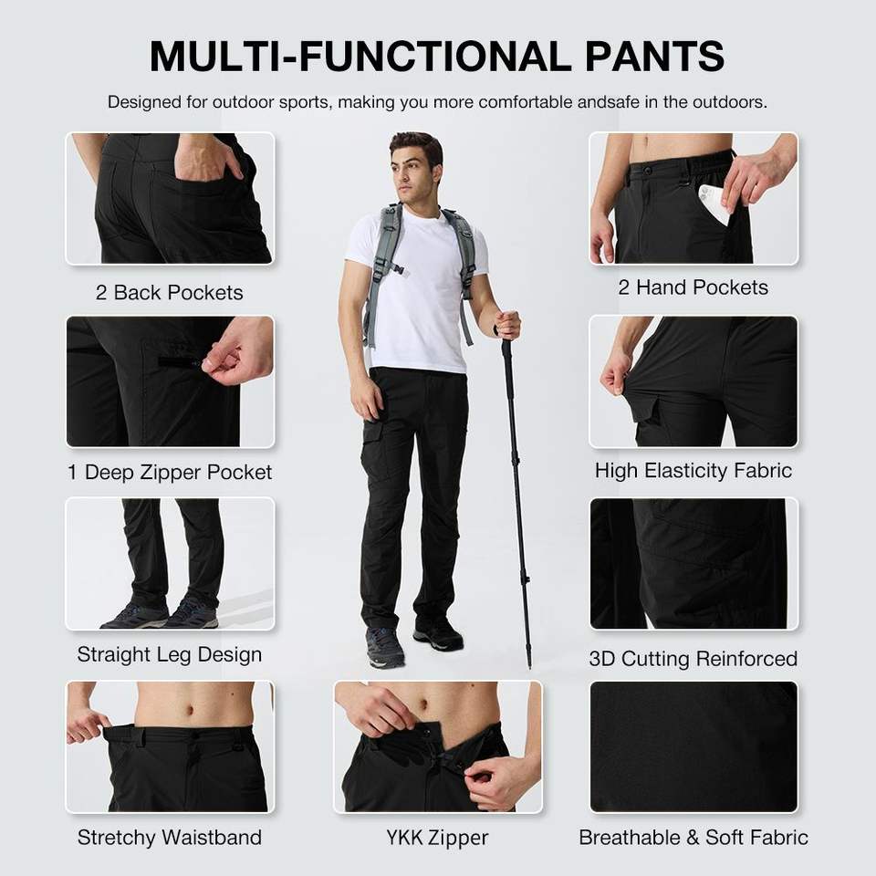 Pantalon cargo léger pour homme, à séchage rapide, imperméable, 6 poches, extensible, pour le travail, la pêche, les voyages, la randonnée, les activités de plein air