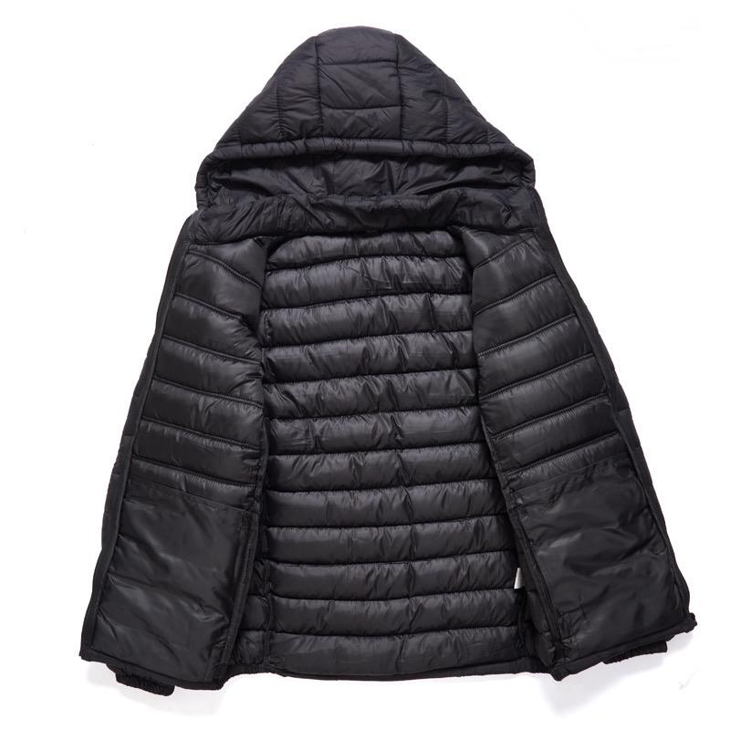 Veste matelassée légère pour homme en noir avec capuche Manteau d'hiver imperméable et chaud pour l'extérieur et les vêtements décontractésExpédition DDP