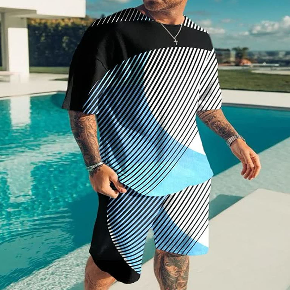 Ensemble survêtement deux pièces léger d'été pour homme, t-shirt à manches courtes et short grande taille