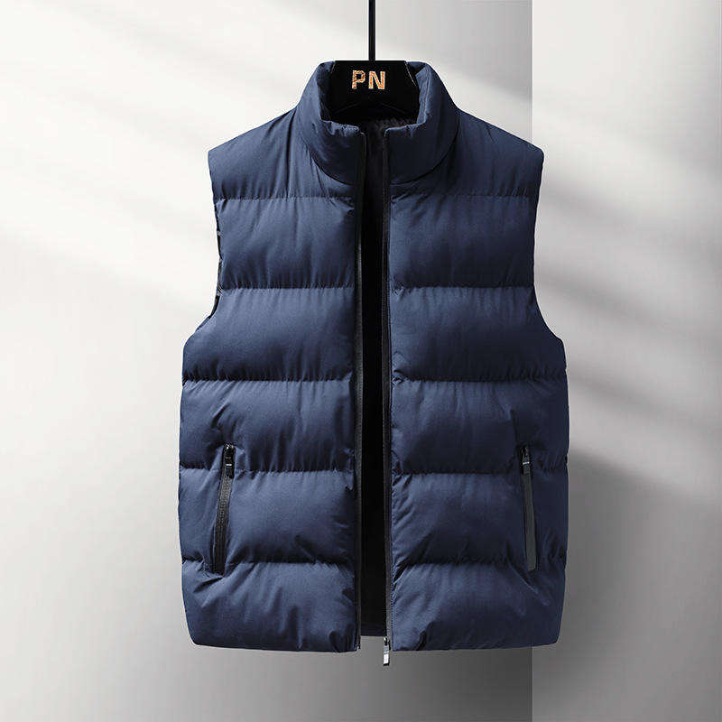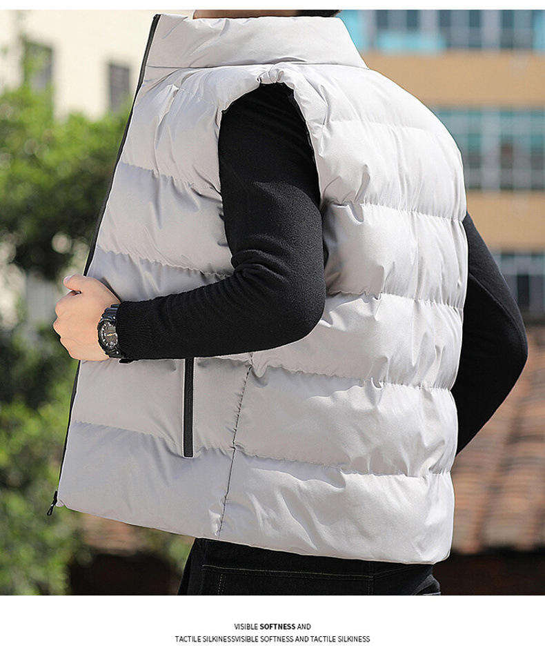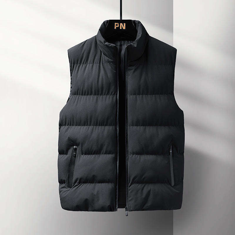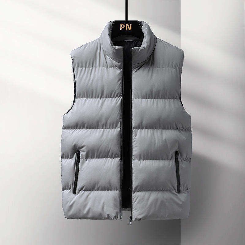 Gilet bouffant sans manches pour hommes, léger et chaud, avec fermeture à glissière complète, résistant à l'eau, vêtements d'extérieur en grandes tailles avec col montant, teint uni