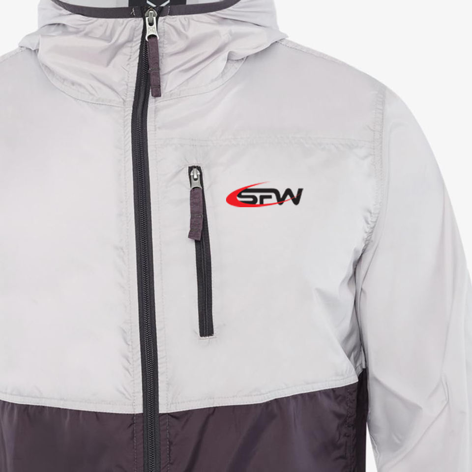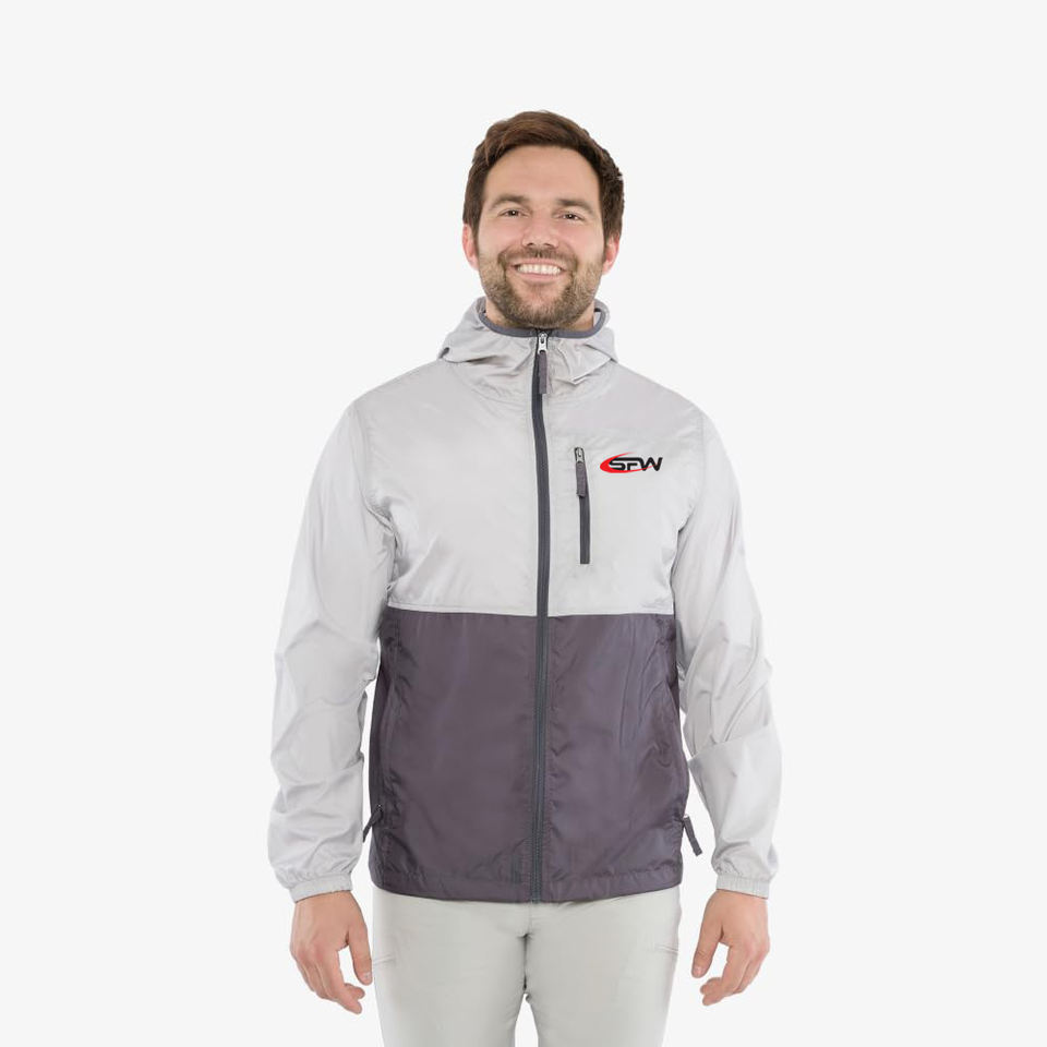 Men's Lightweight Waterproof Windproof Hooded Jacket with Stand Collar Zipper Closure Embroidery Zip-off Front Athletic Running