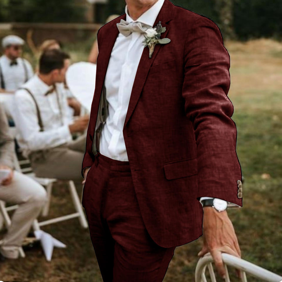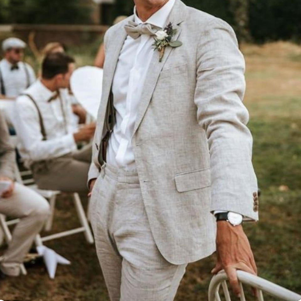 Costume en Lin Élégant pour Homme, Costume de Marié de Haute Qualité, Veste Droite Personnalisable, Tenue Complète de Mariage