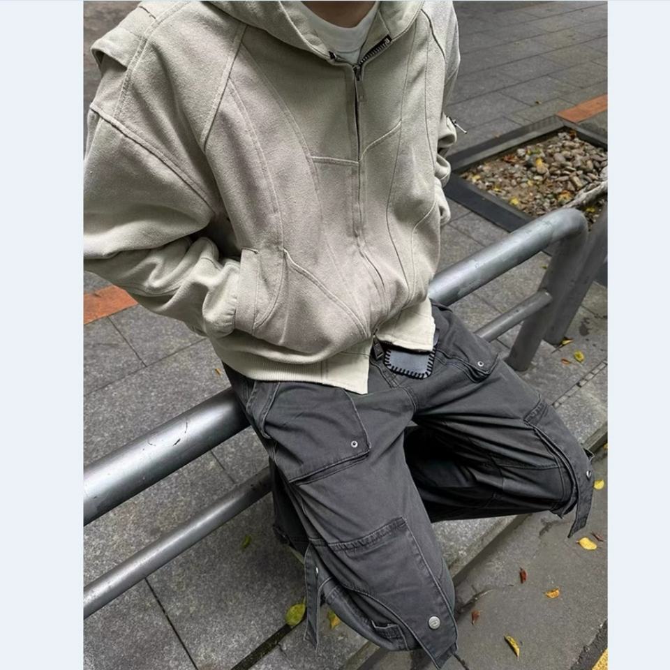 Veste en toile à fermeture éclair pour homme, style tendance de rue, longue et ample, automne
