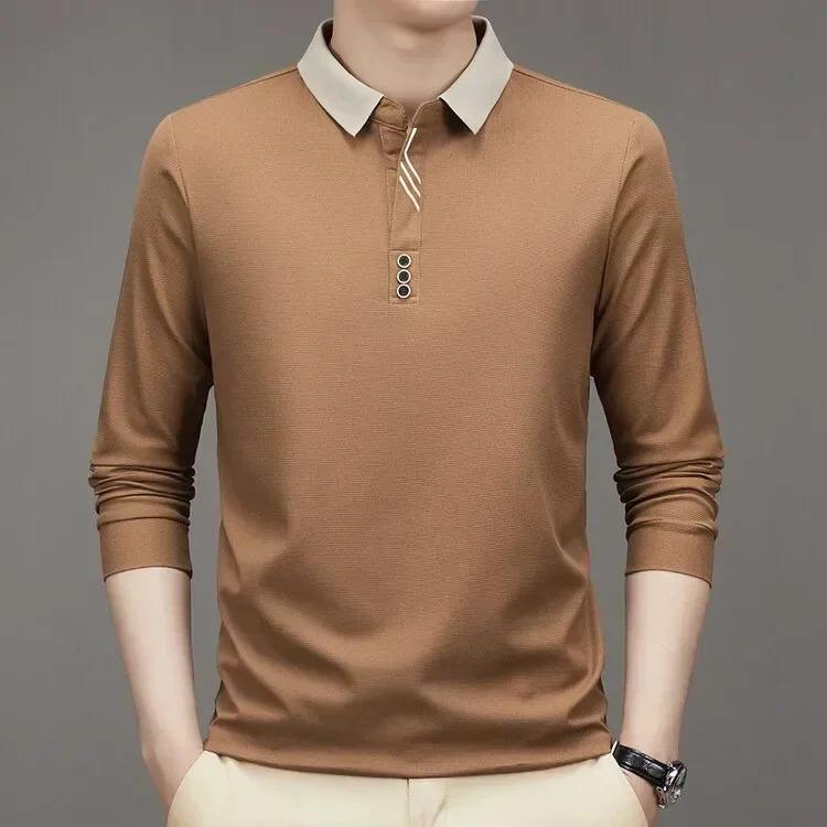 Men's Long Sleeve Business Casual Style for Polo T-Shirt Breathable Waffle Knitted Fabric Turn-Down Collar Printed Plaid Plus