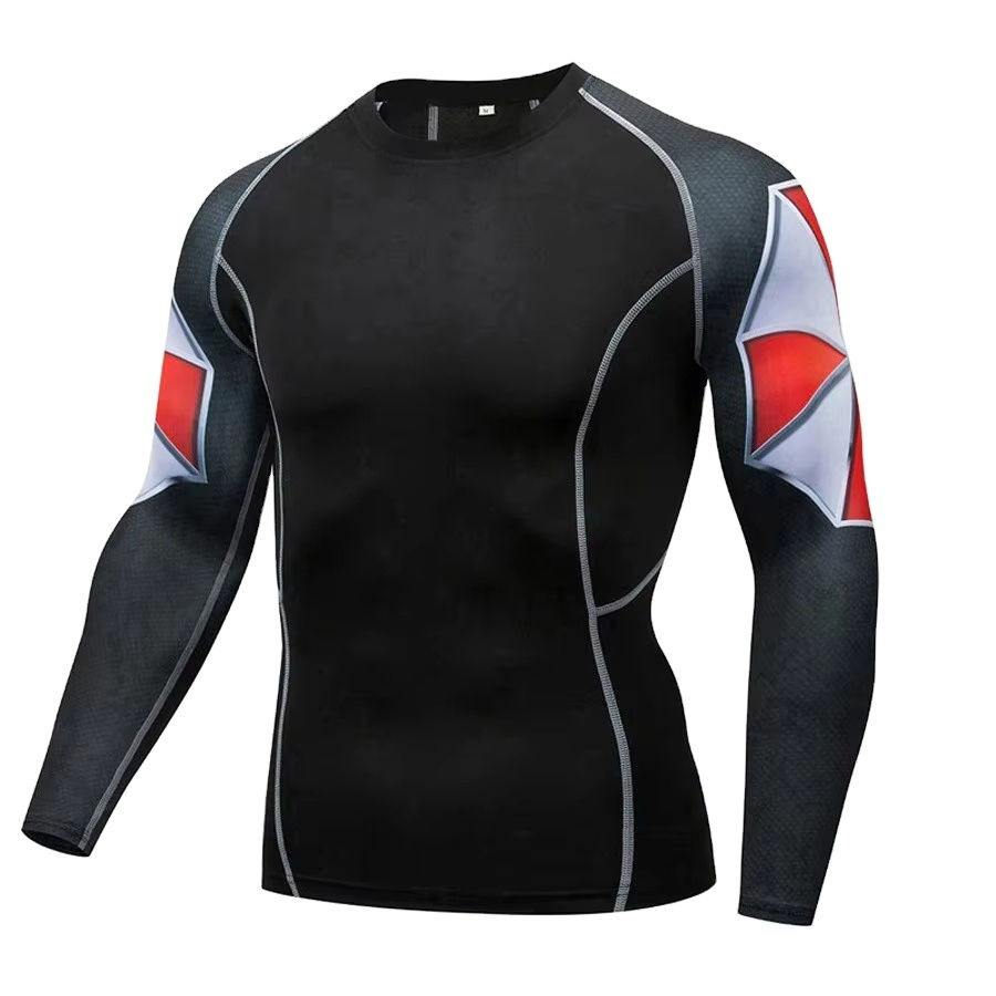 T-shirts de compression respirants à manches longues pour hommes, anti-UV, séchage rapide, impression personnalisée par transfert thermique, vêtements ajustés