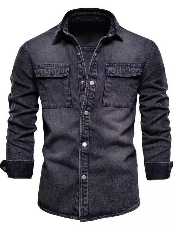 Veste en jean à manches longues de couleur unie pour hommes, vêtements de travail décontractés à la mode de style coréen pour le printemps, l'automne, chemise à boutons