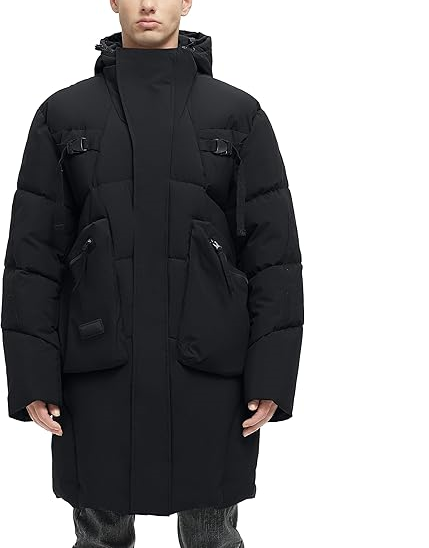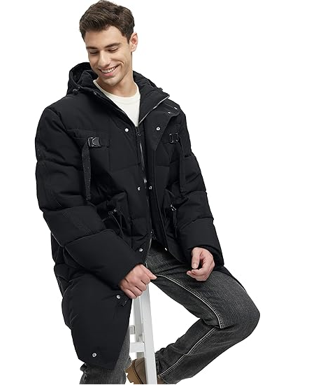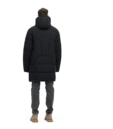 Manteau d'hiver long pour homme - Veste imperméable à capuche épaisse