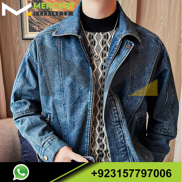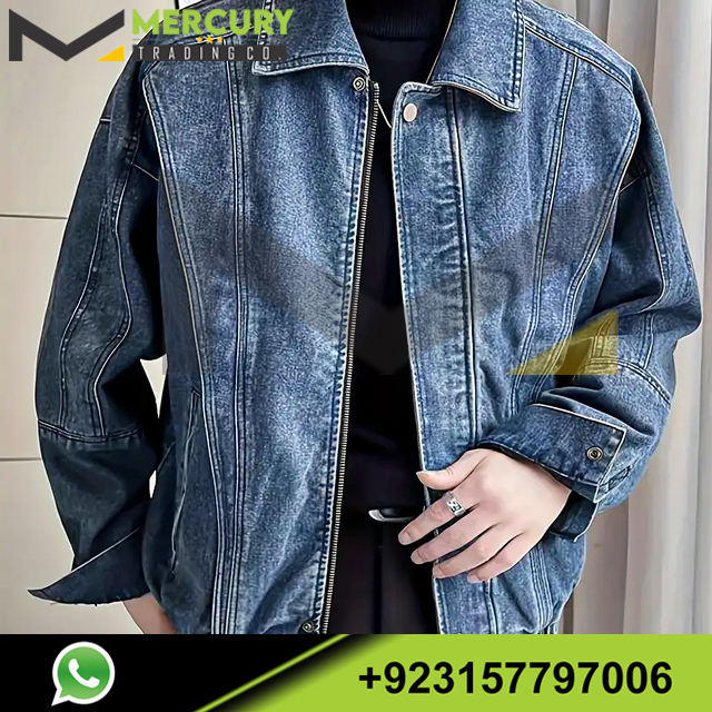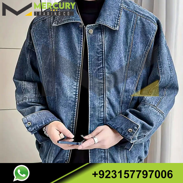Veste en jean solide ample pour hommes avec poches, revers décontracté en coton mélangé avec fermeture éclair à manches longues vêtements d'extérieur pour l'extérieur