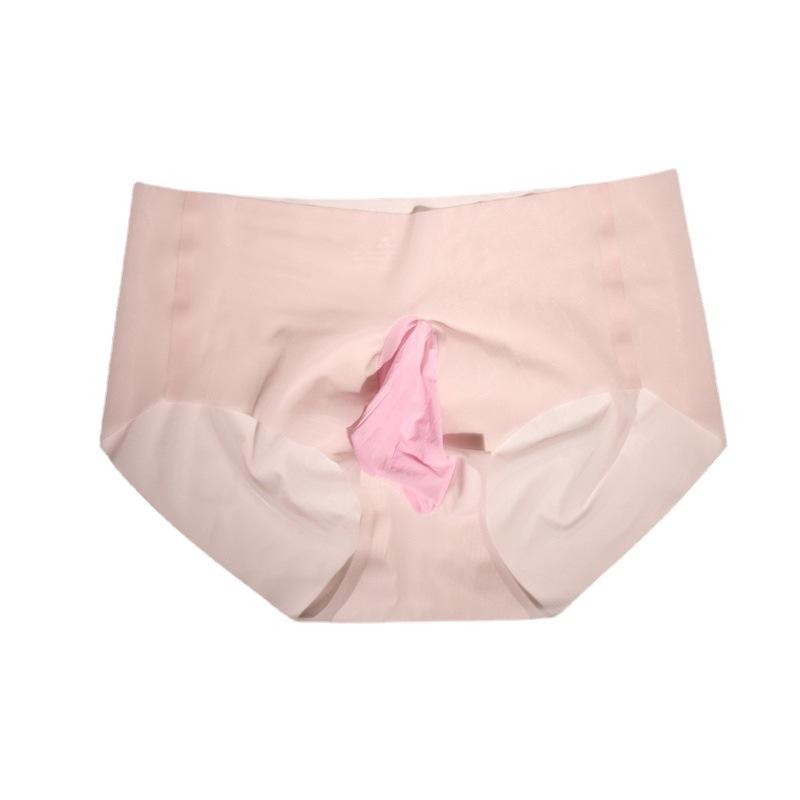 Men's Low-Rise Seamless Ice Silk Underwear Breathable Solid Color Transparent Briefs For Adults Skin Tone Pink Black White