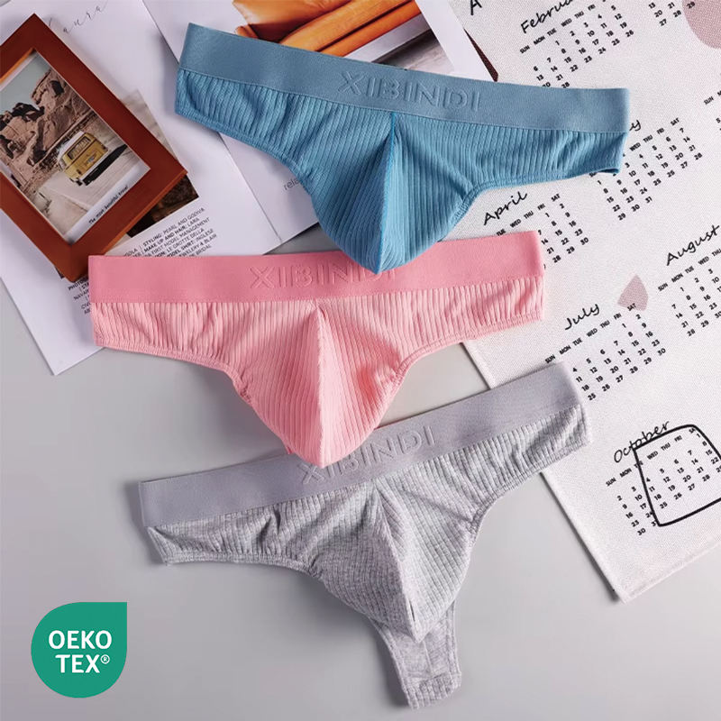Men's Low-Rise Underwear Sexy Thong Collection Spandex/Cotton Briefs Garment Dyed Soft Fashion Designer Underpants Wholesale