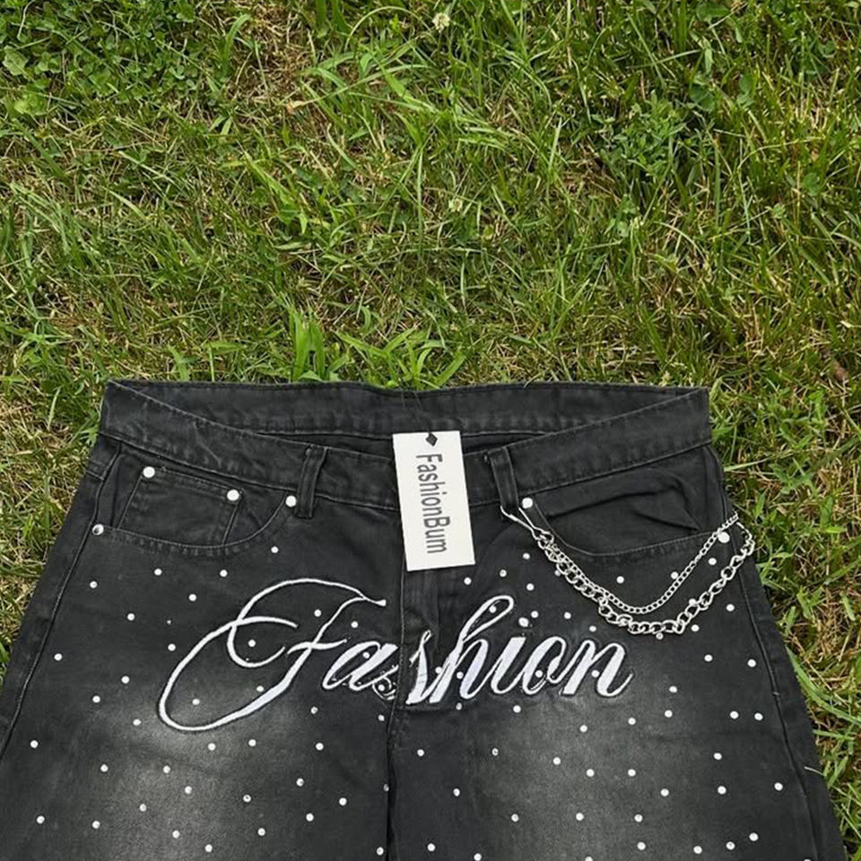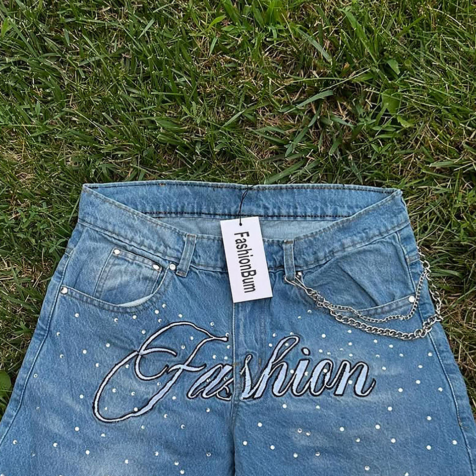 Product name:Denim Rhinestones Shorts
