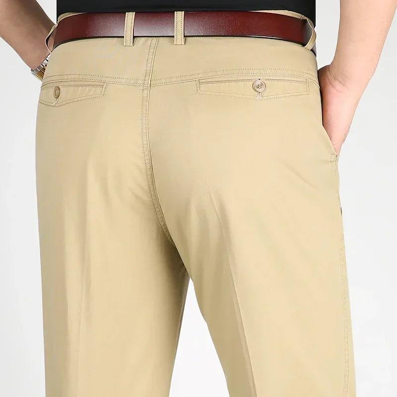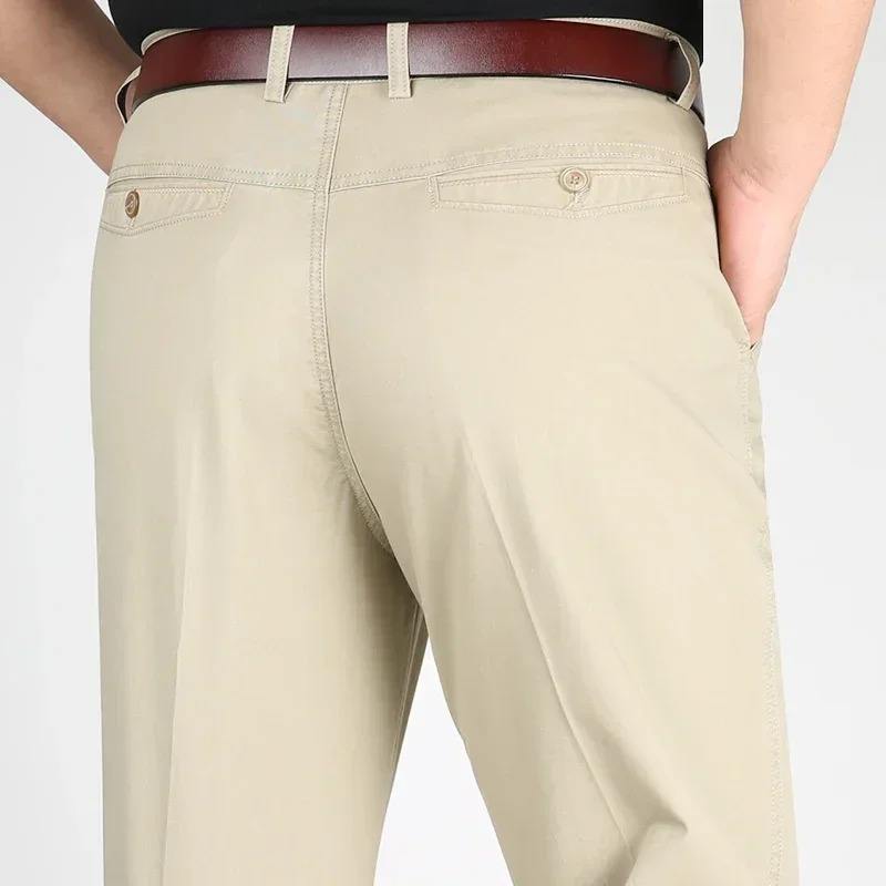 Pantalon taille moyenne pour hommes Pantalon habillé écologique respirant décontracté droit en coton ample fermeture à cordon solide blanc automne