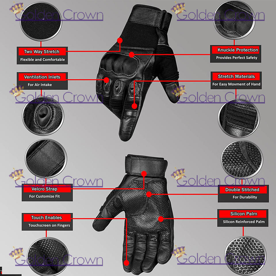 Gants de moto pour hommes Gants de protection en cuir véritable Gants de sécurité pour l'extérieur
