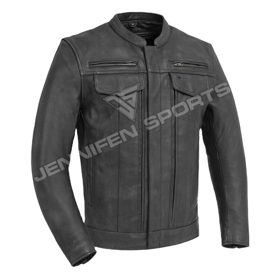 Blouson de moto en cuir de vachette respirant et coupe-vent pour homme, fermeture éclair et boutons, teint en pièce, option logo personnalisé, matelassé