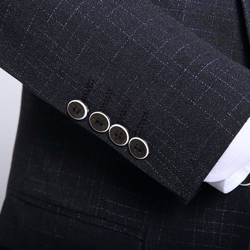 Costume trois pièces bleu marine à carreaux pour homme, blazer sur mesure, gilet ajusté, pantalon formel, tenue d'affaires