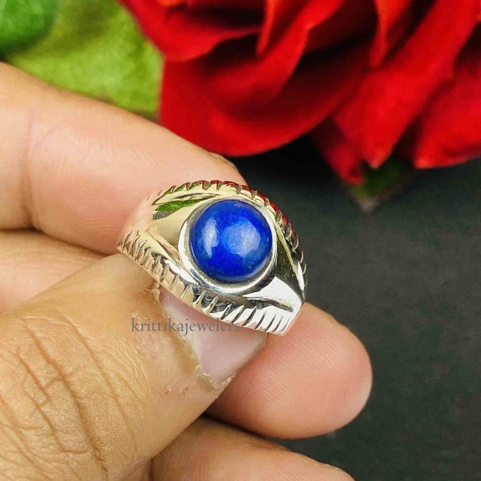 Bague pour homme en argent sterling 925, nouvelle conception classique, faite à la main, avec pierre précieuse lapis-lazuli, pour mariage, fiançailles, fête, sertie en bélière