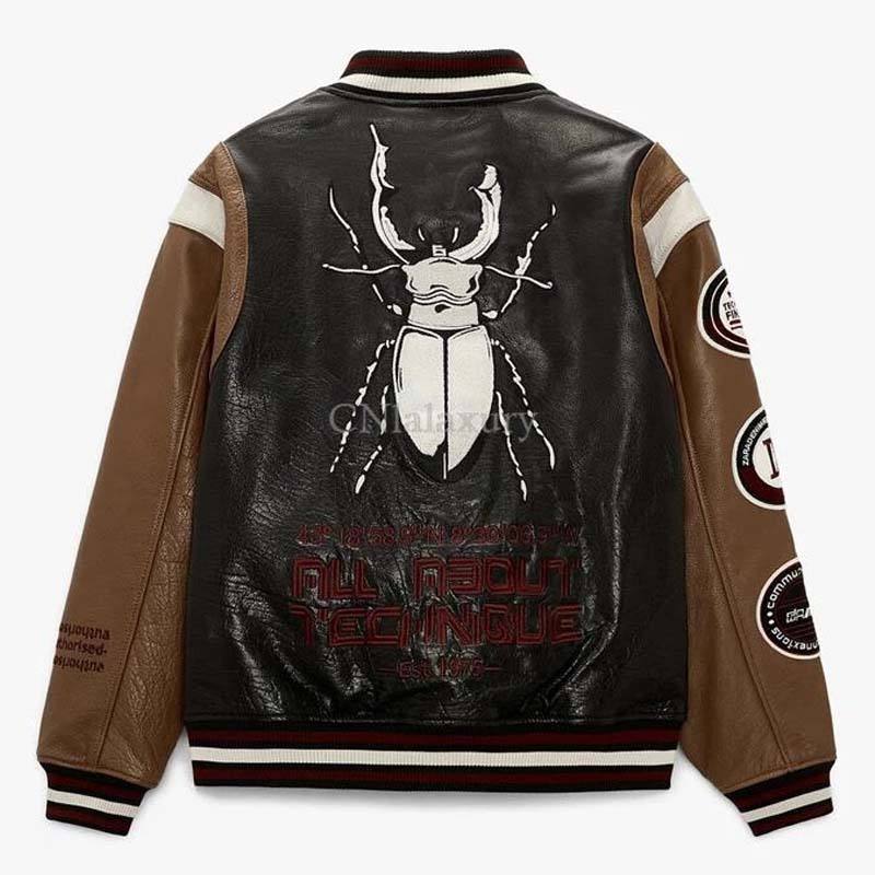 Veste de moto en cuir pour hommes, nouveau style, broderie printemps-automne, baseball, loisirs universitaires, grande taille, respirante