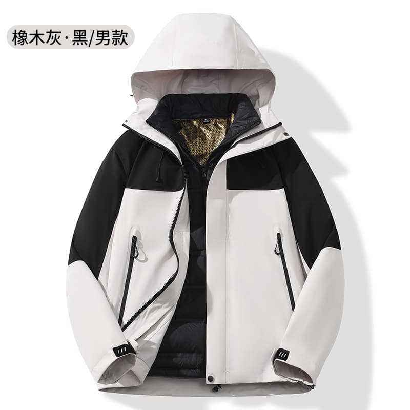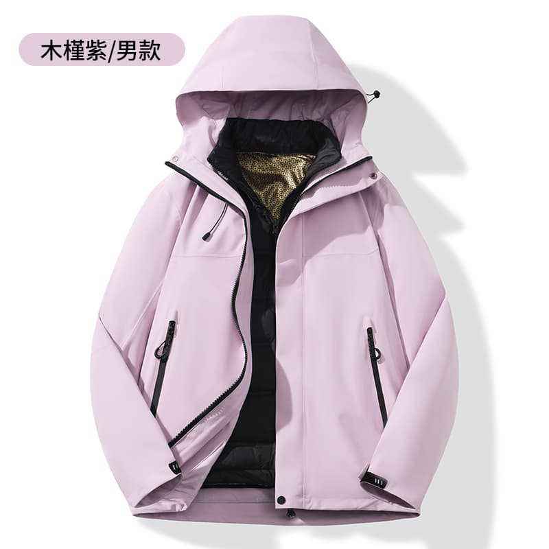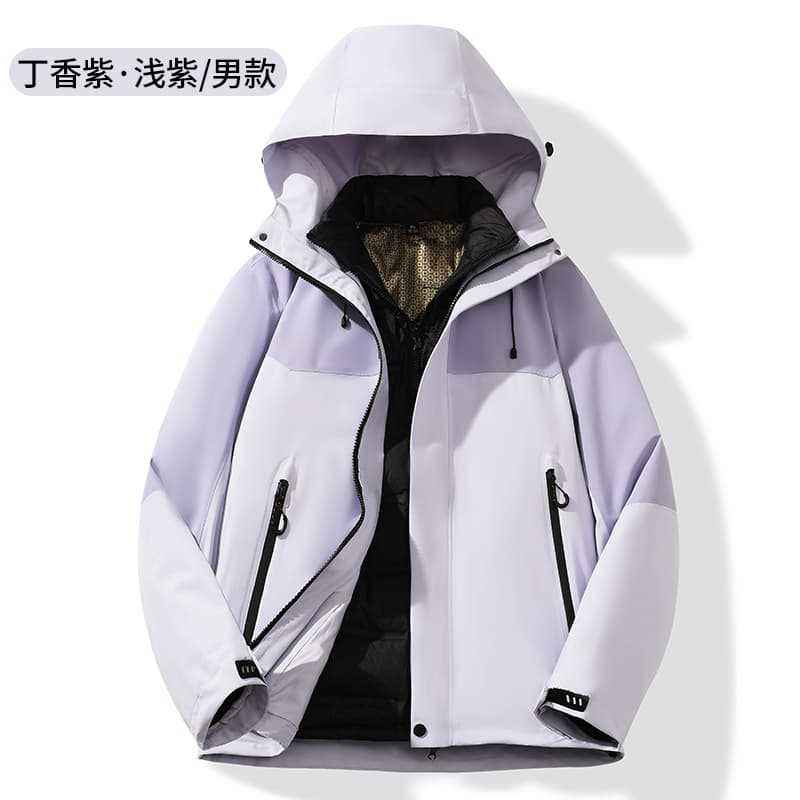 Men's Outdoor 3-In-1 Down Jacket Windproof Workwear Purple Hooded With Zip Pockets