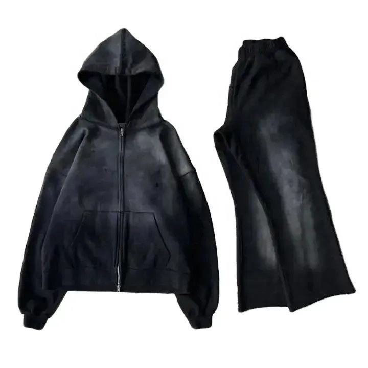 Sweat à capuche zippé en coton polaire oversize délavé à l'acide pour hommes Street Wear avec échantillon gratuit de logo personnalisé pour l'hiver