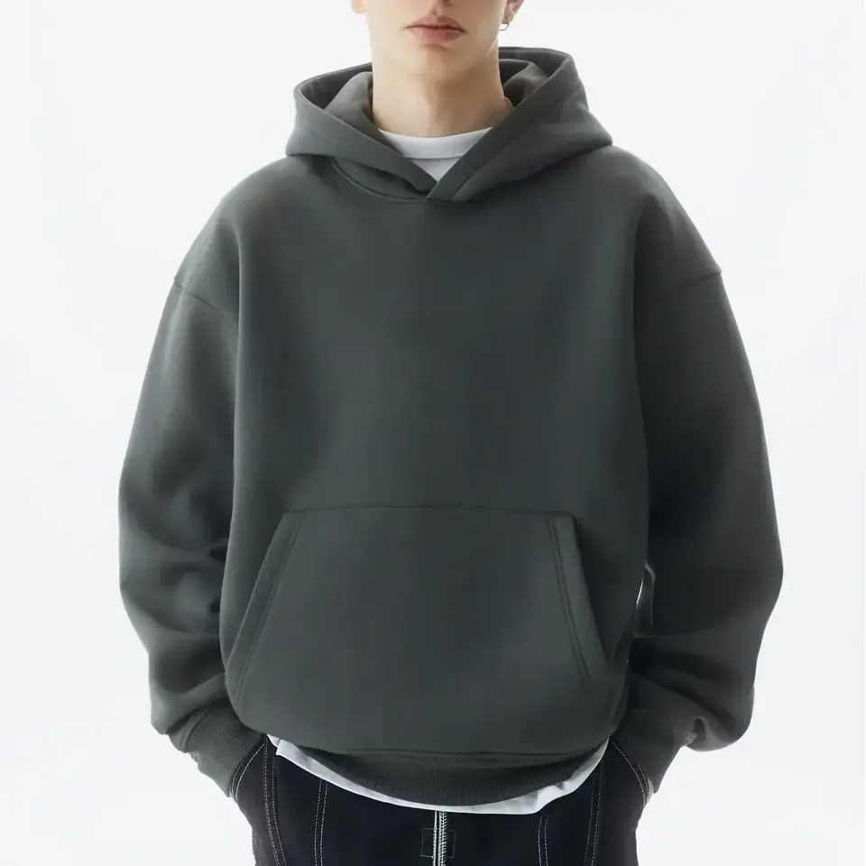 Sweat à capuche polaire oversize pour homme, en polyester/coton teint uni, techniques de broderie, poids 400g, avec poche
