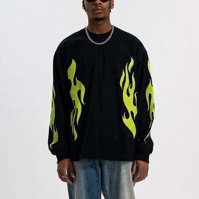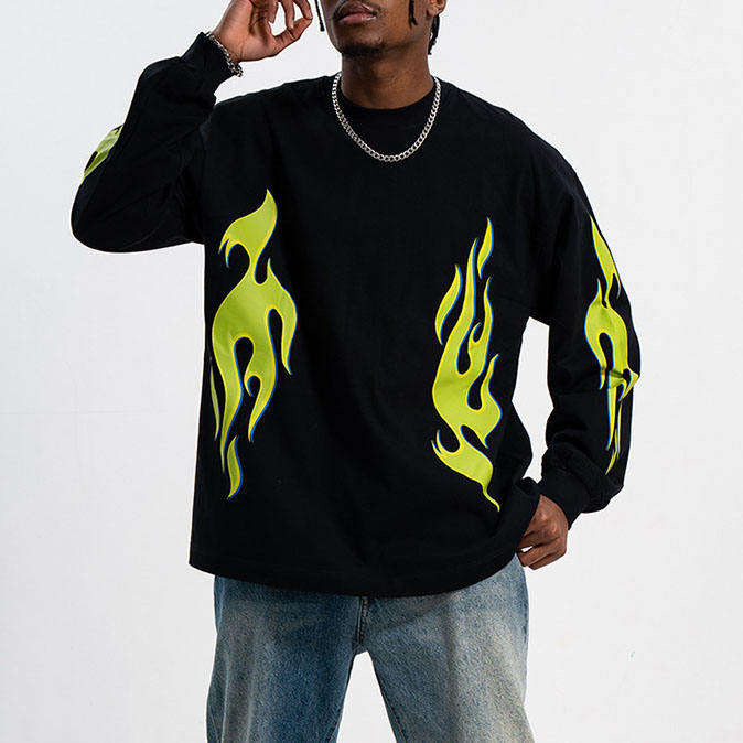 T-shirt à manches longues et col ras du cou pour hommes, surdimensionné 100% coton, dernière sérigraphie tendance, chemises de couleur unie, 220 grammes, poids du tissu