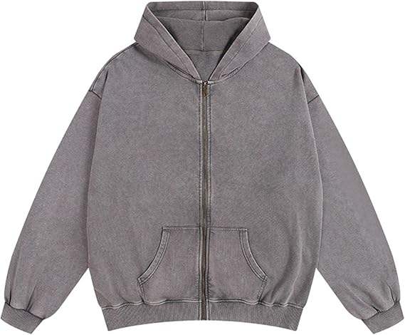 Sweat à capuche zippé intégral pour homme, personnalisable, coupe oversize, délavé à l'acide, 100% coton, style streetwear vintage, coupe ample, vente en gros