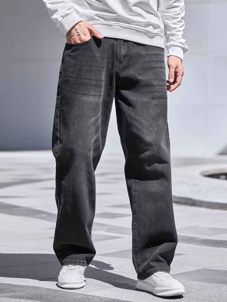 Men's Oversized Baggy Jeans Relaxed Wide-Leg Denim Trousers Comfortable Vintage Gothic Street Fashion Durable Fabric for Winter