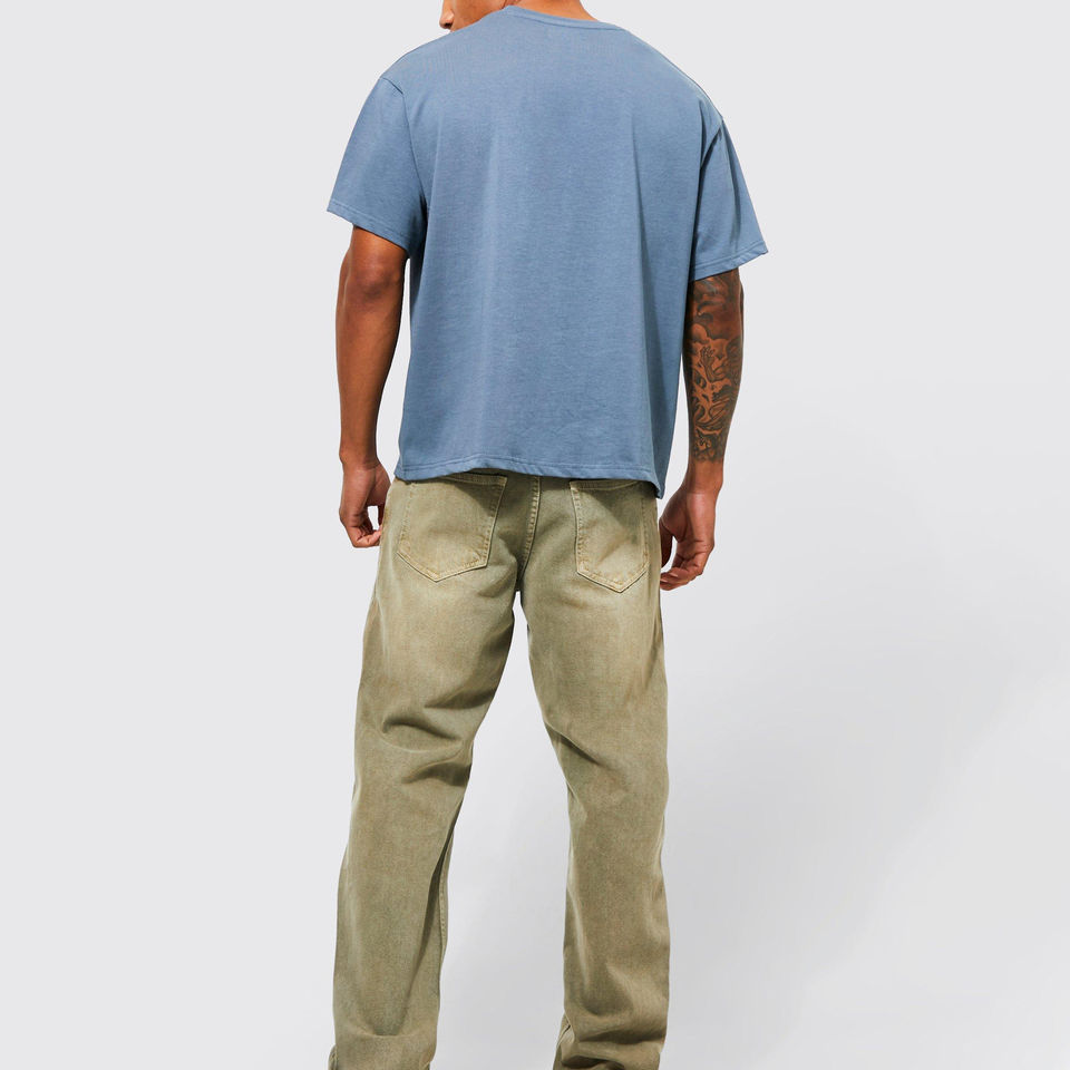 T-shirt Homme Oversize Coupe Boxy Coton Peigné Uni Personnalisable Col Bas Épaules Tombantes Logo Avant Style Streetwear Pas Cher