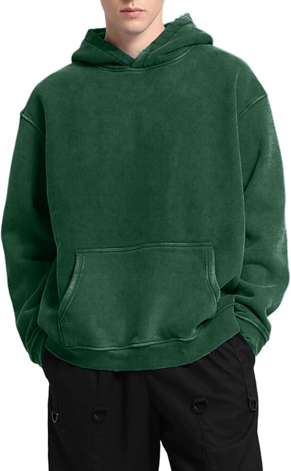 Sweat-shirt à capuche surdimensionné en coton pelucheux lavé pour hommes avec un poids lourd vintage pour l'hiver Streetwear