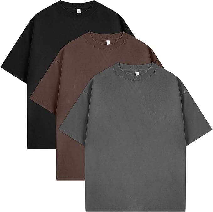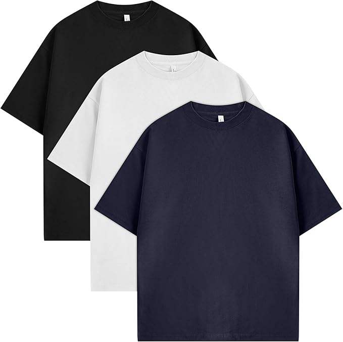 Ensemble de 3 t-shirts surdimensionnés pour hommes - Coton premium, col rond, t-shirts amples et respirants pour un usage quotidien décontracté