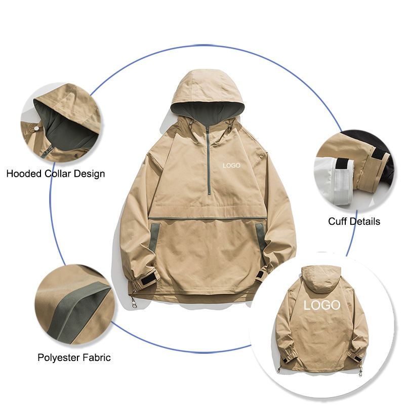 Sweat à capuche coupe-vent surdimensionné pour homme, style workwear, demi-zip, logo personnalisé, impression silicone, mode automne, 100% polyester