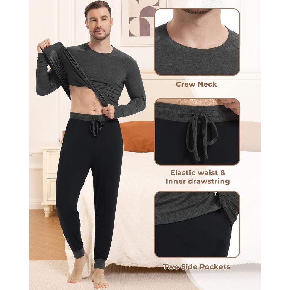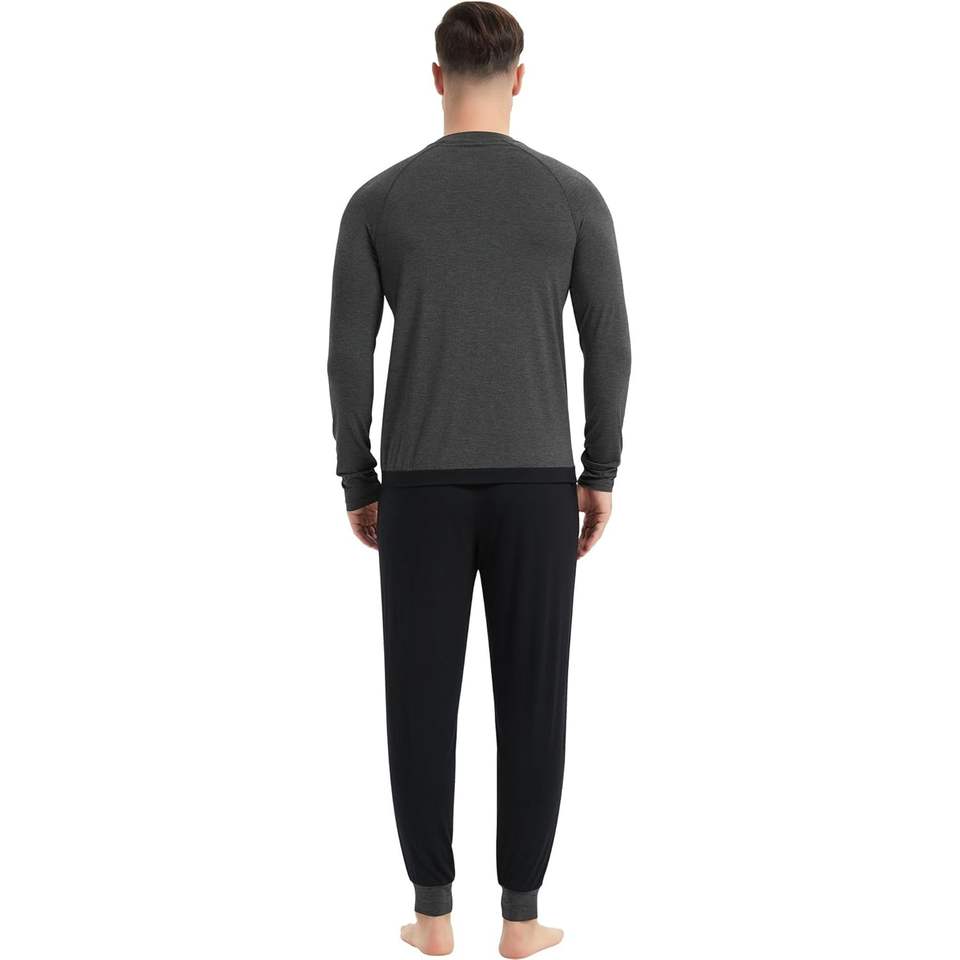 Ensemble de pyjamas pour hommes, manches longues, vêtements de nuit doux en tricot avec poches, tissu en coton de bambou, extensible, confortable, vêtements de nuit pour hommes