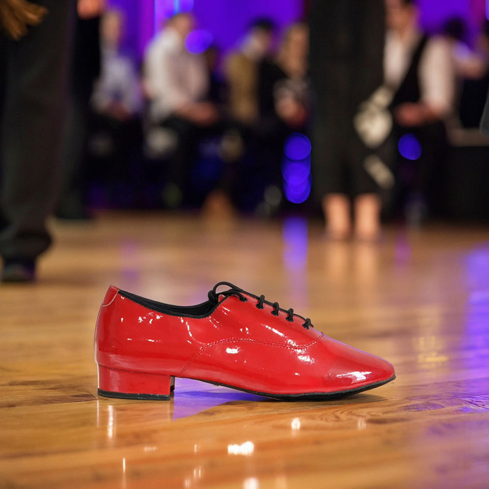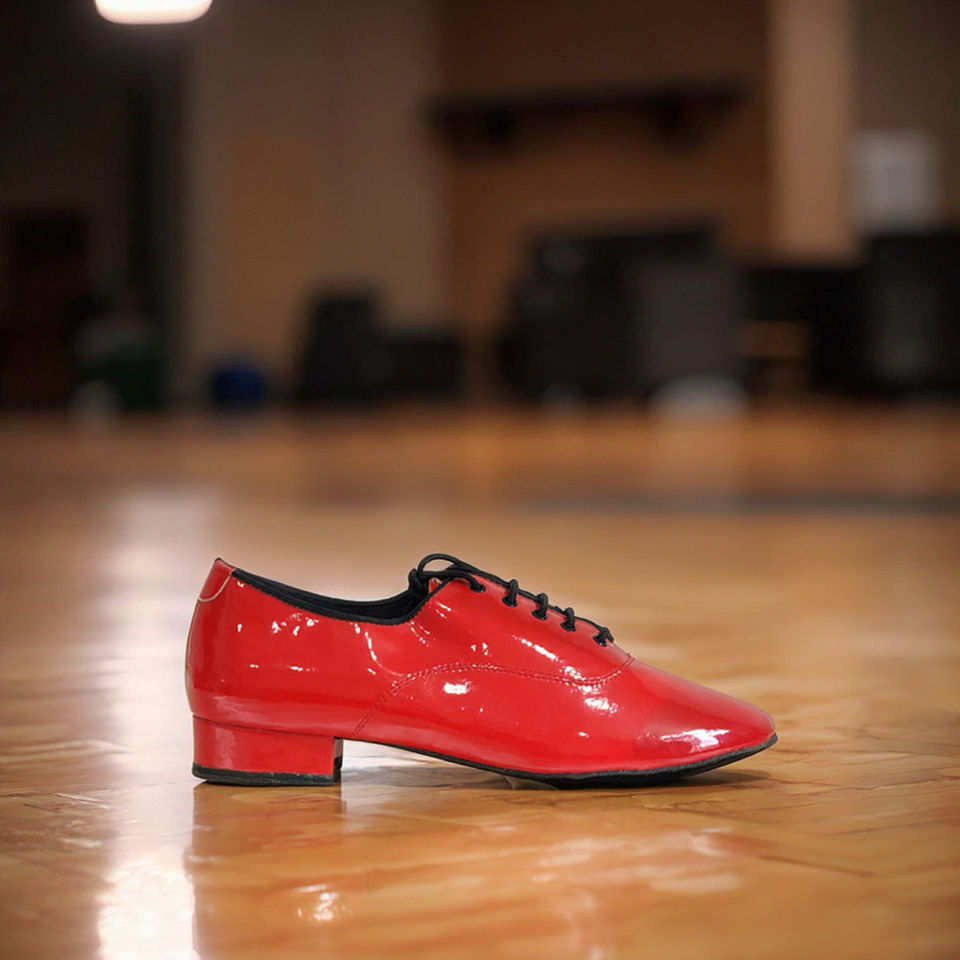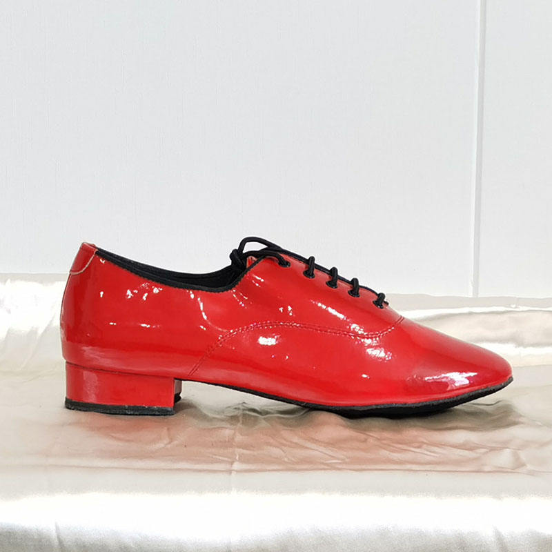 Chaussures de danse à talon bas pour hommes rouge verni pour salle de bal Salsa Rumba Bachata Tango
