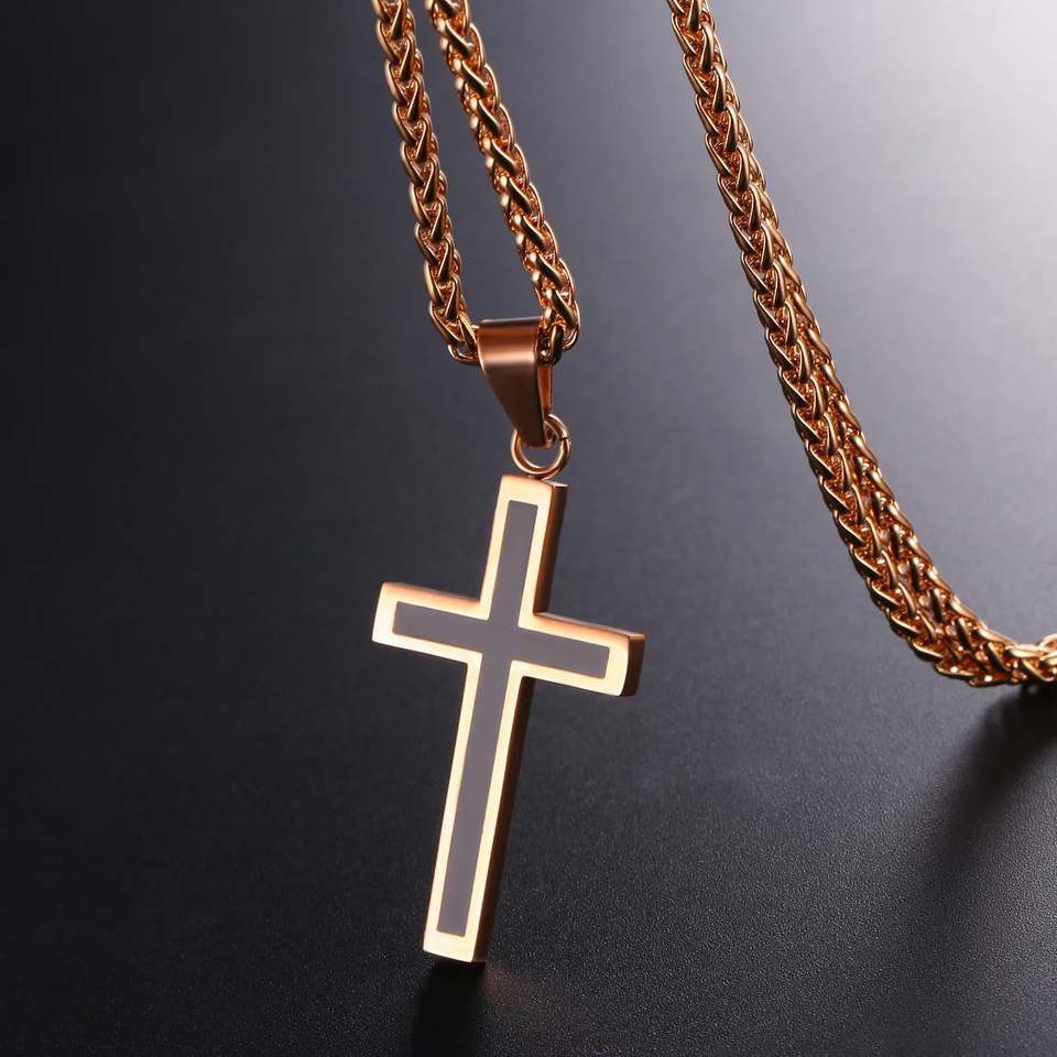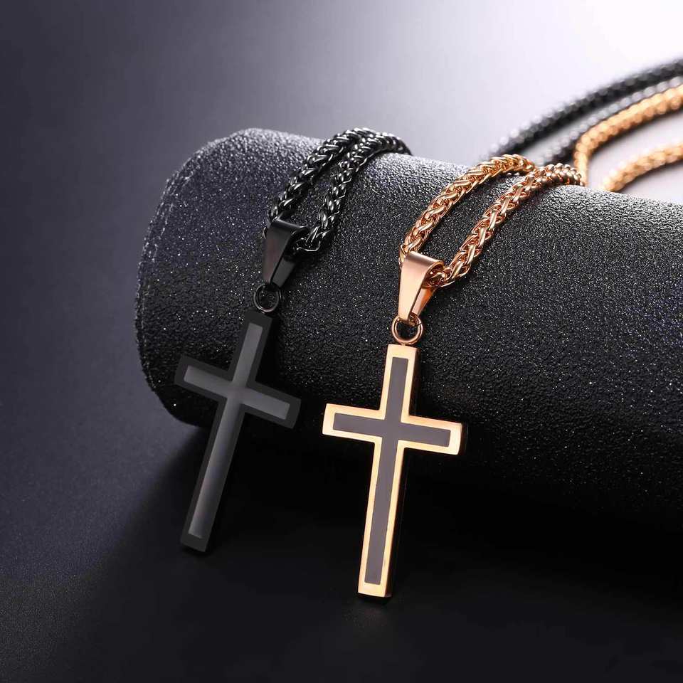 Collier pendentif pour homme, chaîne corde Franco, croix pendante, acier inoxydable, or rose, or noir, argent, 55 cm, bijoux
