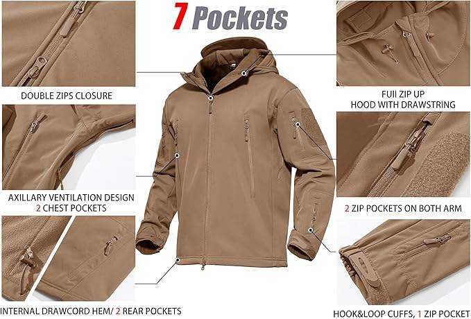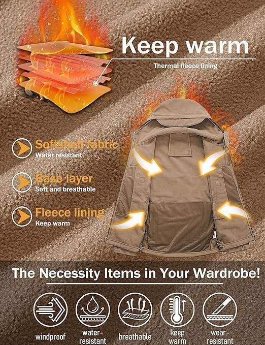 Veste d'hiver tactique doublée en polaire respirante pour hommes, manteau souple à 7 poches pour l'eau, moto, vêtements de course automobile