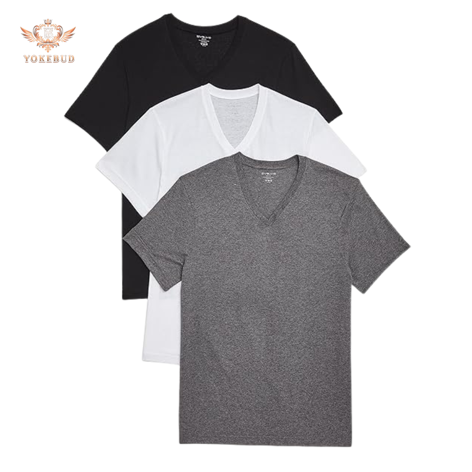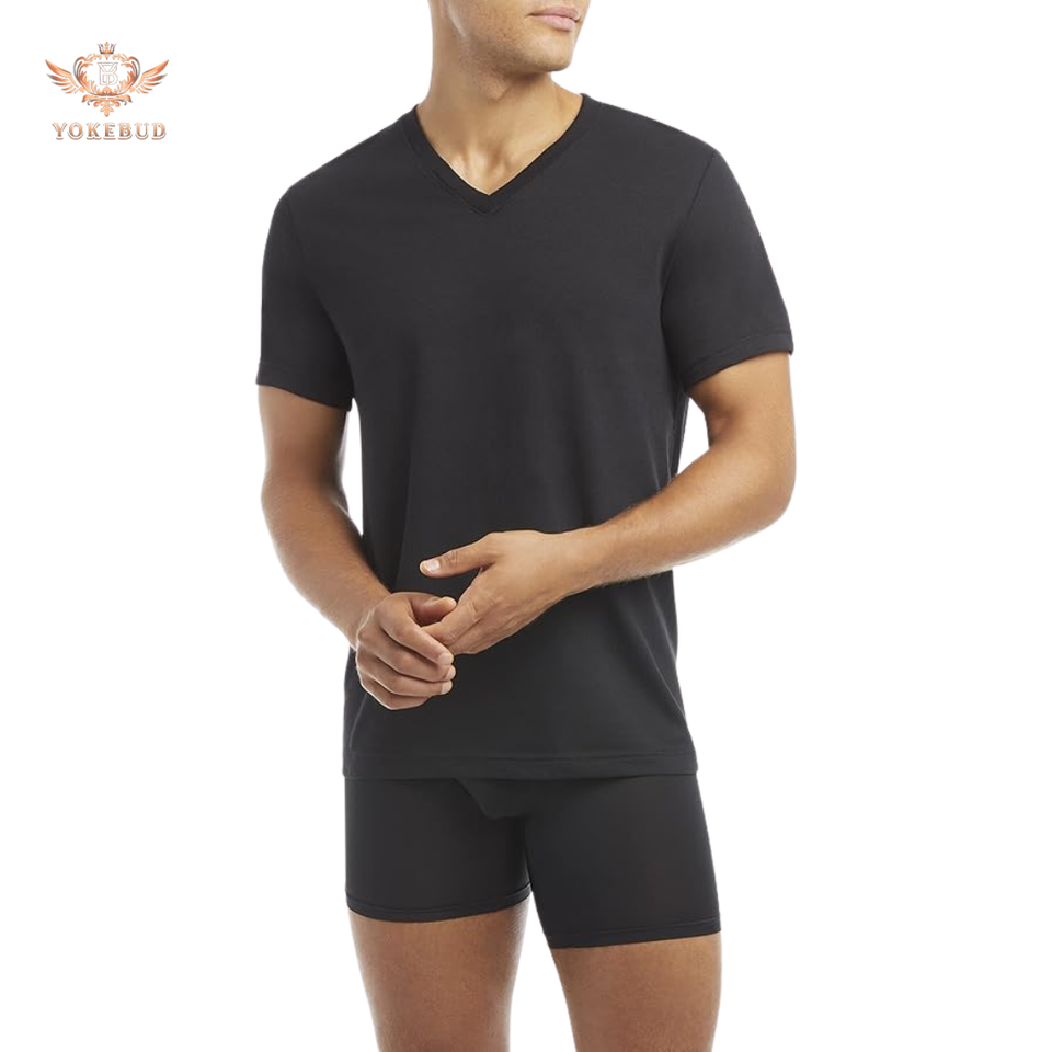 T-shirt à col en V en coton pour hommes, doux, respirant, décontracté, coupe ajustée, t-shirt à manches courtes pour un usage quotidien et une forme sportive BD