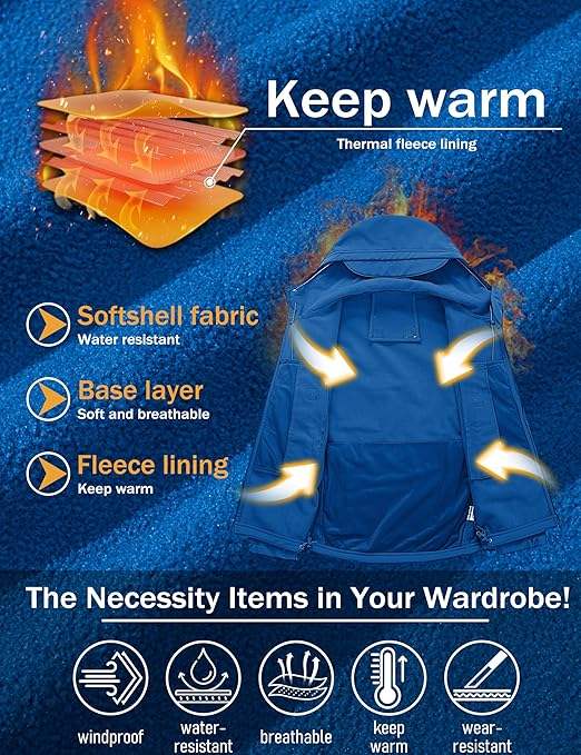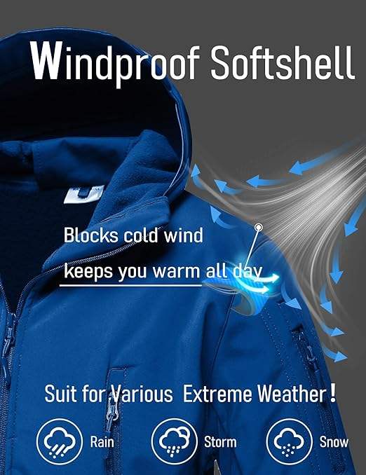 Veste d'hiver tactique doublée de polaire respirante pour hommes, 7 poches, coque souple, résistante à l'eau pour la course automobile de moto